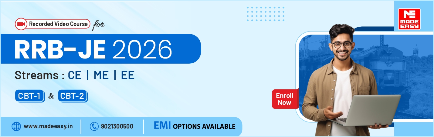 Introducing our comprehensive live course tailored specifically for the RRB JE 2026 exam! This course is designed to be your ultimate guide to mastering the Junior Engineer exam, providing you with the targeted preparation you need to excel. With expert guidance and comprehensive coverage, this course is your one-stop solution for achieving success in the RRB JE 2026 CBT-1 & CBT-2 Exam.